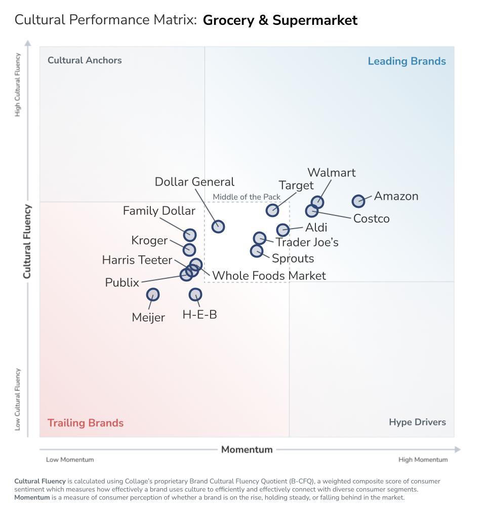 Walmart, Amazon, Costco, and Aldi lead in cultural fluency, while Kroger, Publix, and Target risk falling out of touch.
