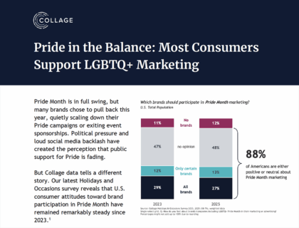 Contrary to the narrative of waning support, 88% of Americans are either positive or neutral about brands participating in Pride Month. In other words, most people aren’t pushing back—they’re either supportive or indifferent. This finding comes from Collage Group’s latest consumer insights, which track evolving attitudes toward LGBTQ+ marketing.